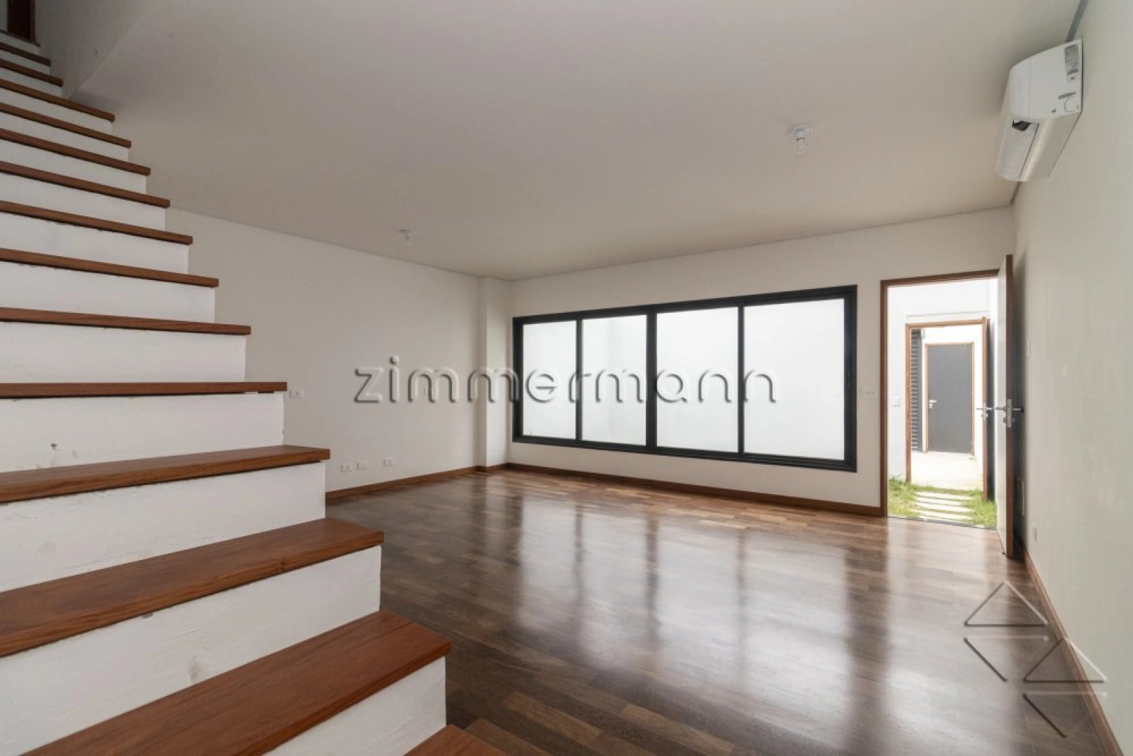 O espaço de 36 m² no piso inferior é versátil, podendo ser utilizado como escritório, estúdio, ateliê ou até mesmo como a quarta suíte.