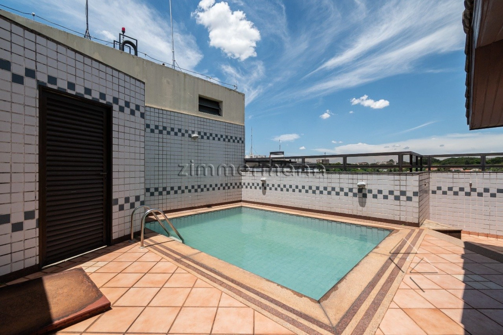 Conta com sala, cozinha, banheiro e uma completa área gourmet com churrasqueira e pia. Área externa com piscina, deck, chuveiro externo e quintal em formato de ?U?. Possui também acesso pela escada de incêndio.